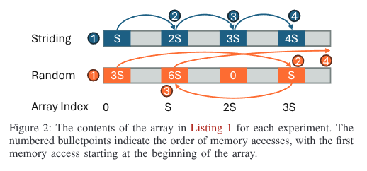 基于上面 Figure 5 的结果, 实验使用了 501 个 nodes 的链表, 500 个 striding
