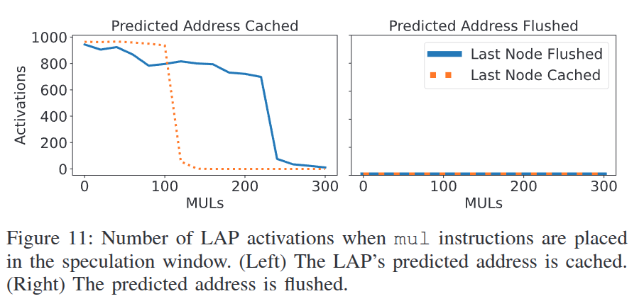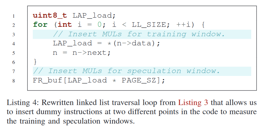 论文分别测量了在 Line 3 和 Line 7 插入 mul 的结果: